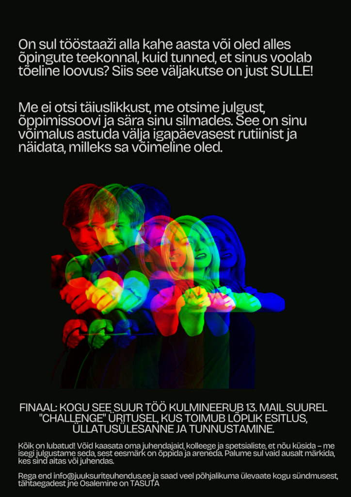 Nüüd on aeg käised üles rullida, sest väljakutse raames ootab sind ees kolm põnevat tööd. See on sinu võimalus näidata oma oskusi, loovust ja nutikust!