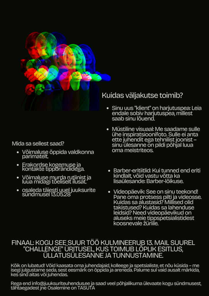 Regamine ja lisainfo: info@juuksuriteuhendus.ee