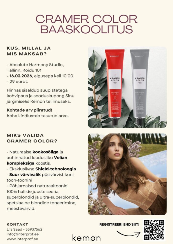 Interprof juuksenoaga lõikamine Kaja Seppel koolitused keemilise loki koolitus Kemon lamineerimine lõikuskoolitus värvikoolitus